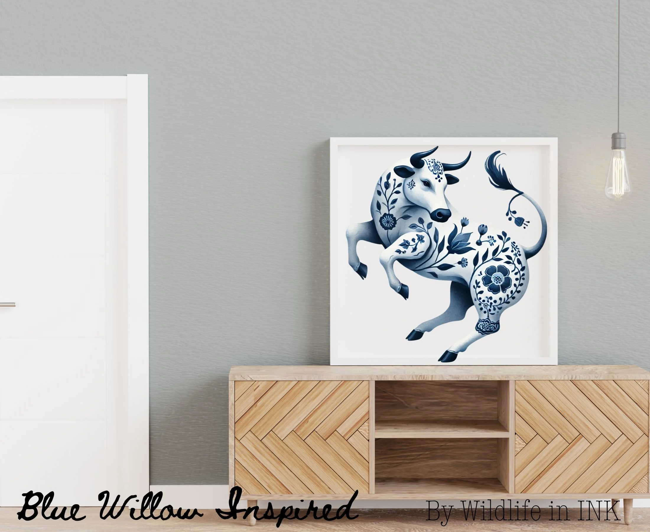 blue willow inspired - single bucking bull